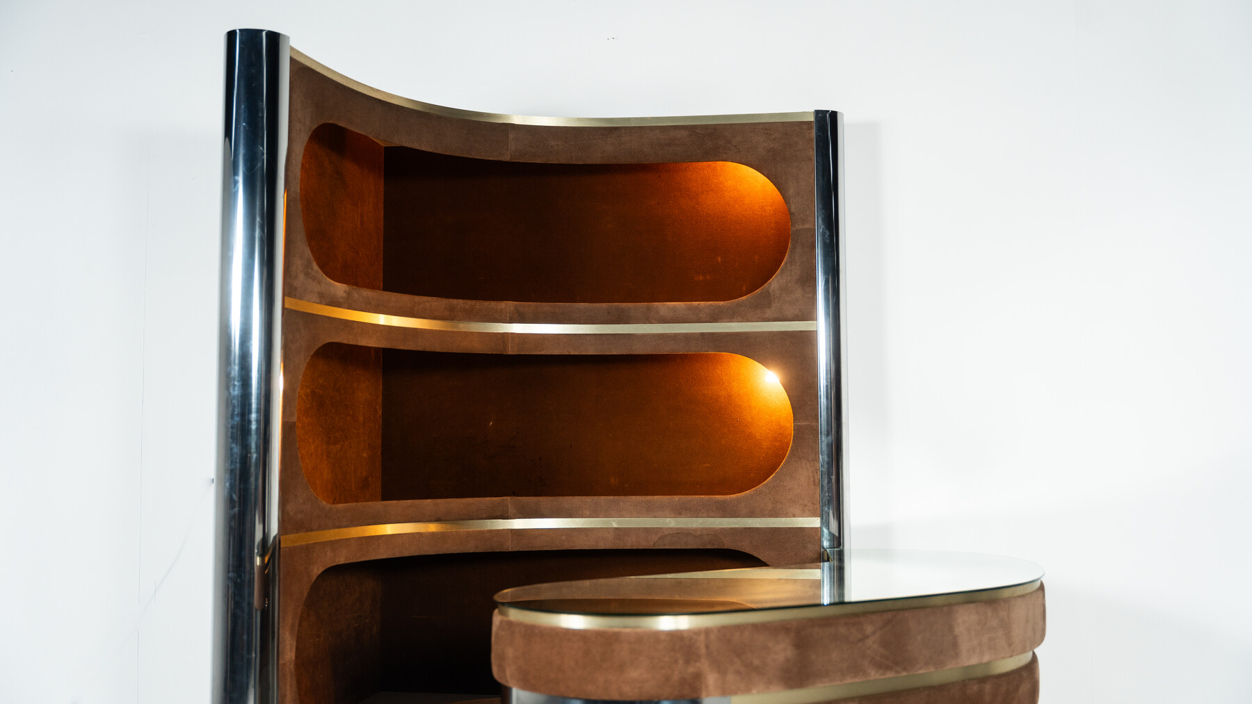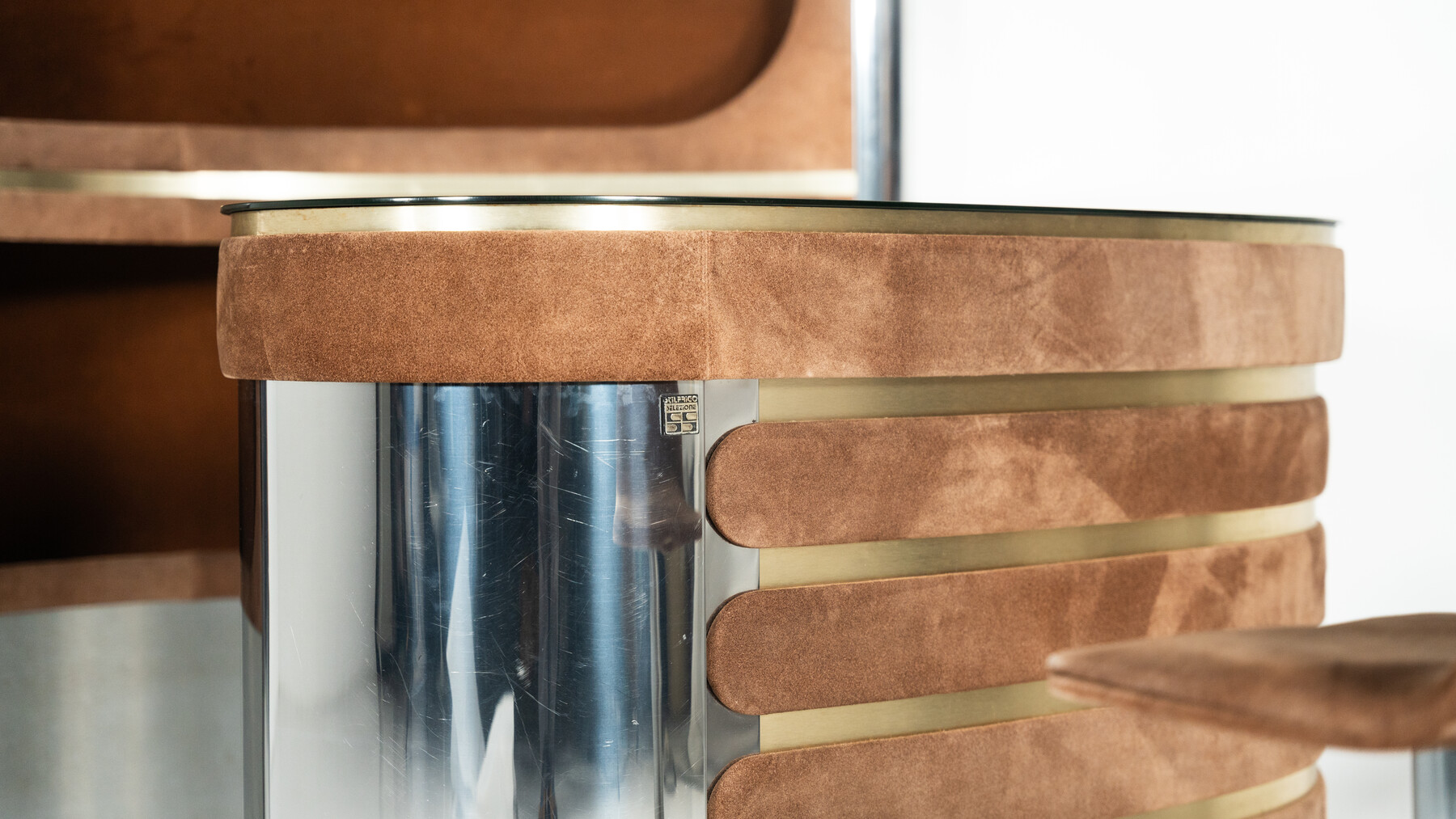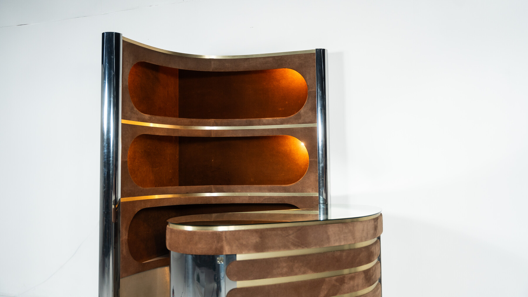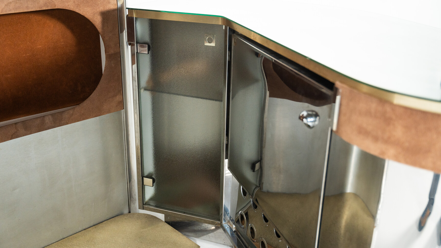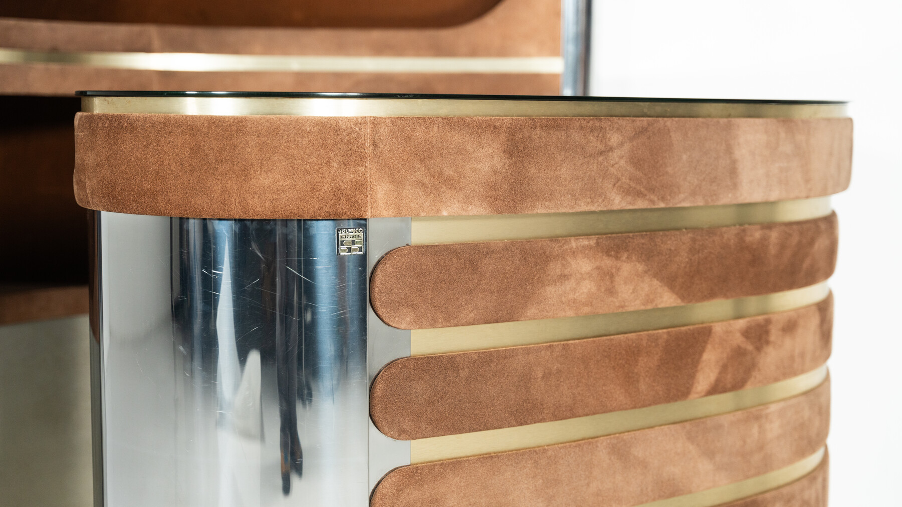 Mid-Century Modern Suede Bar by Willy Rizzo, Italy, 1970s