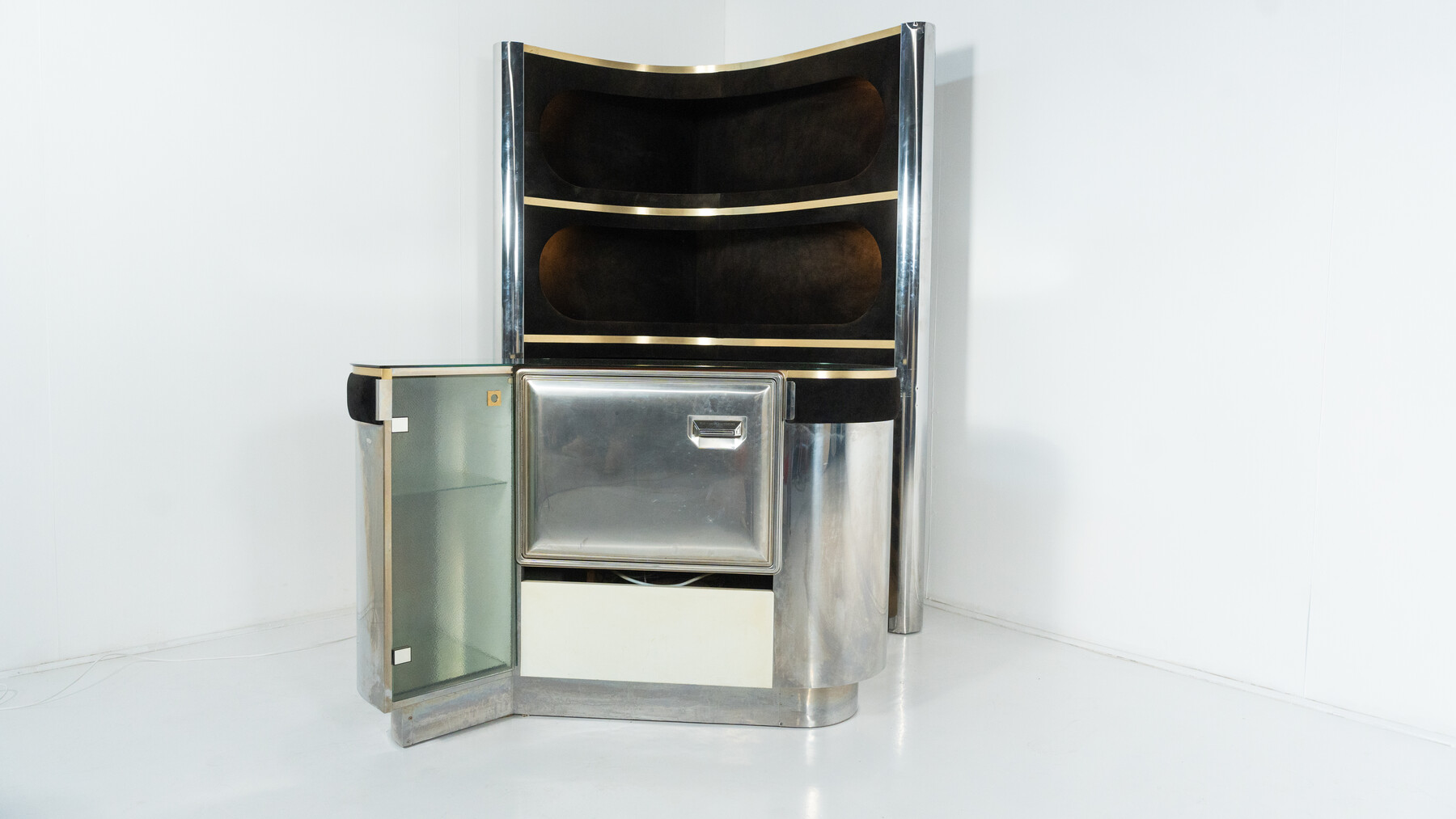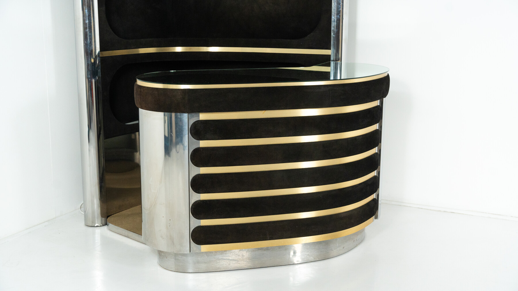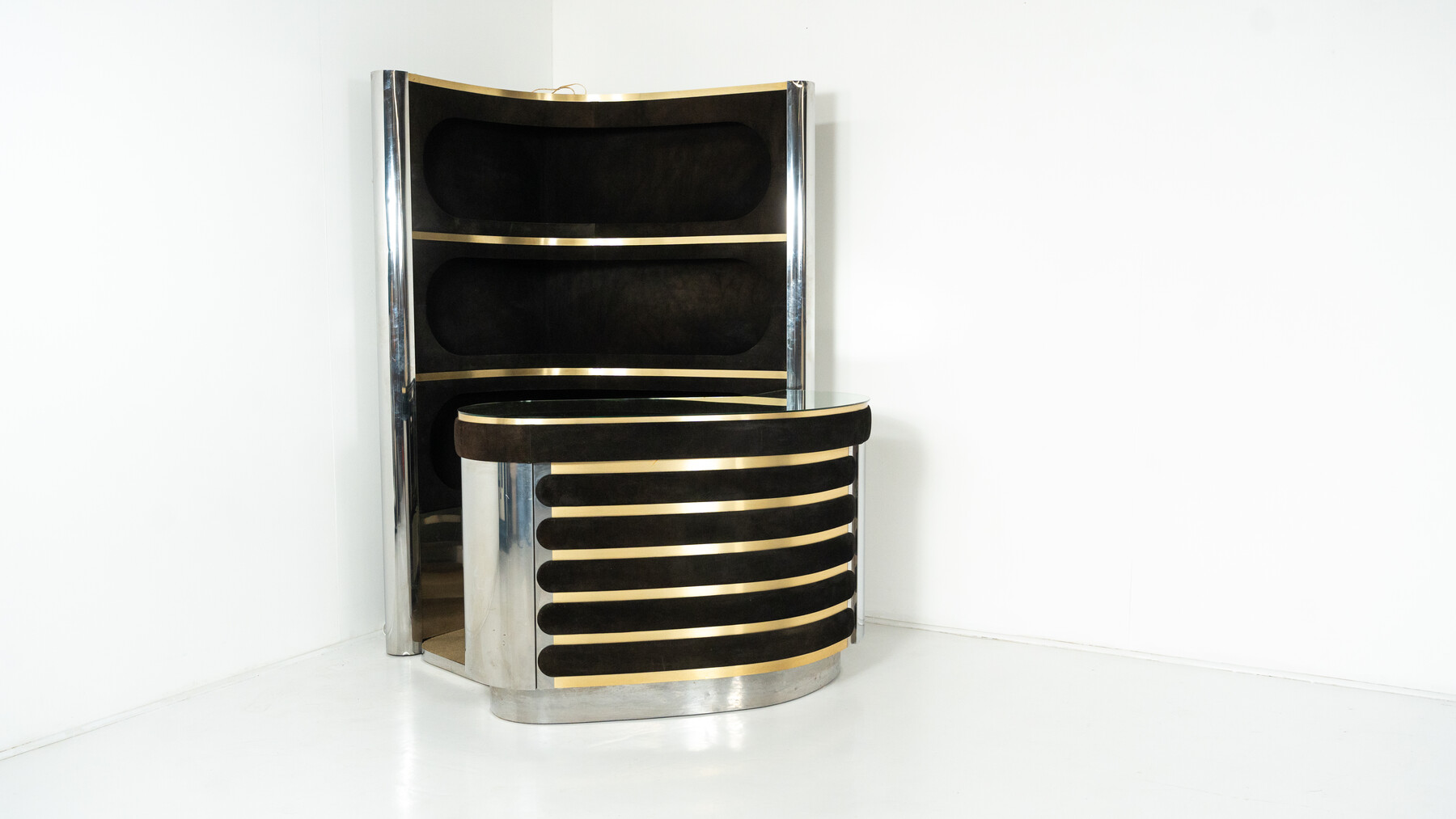 Mid-Century Modern Suede Bar by Willy Rizzo, Italy, 1970s