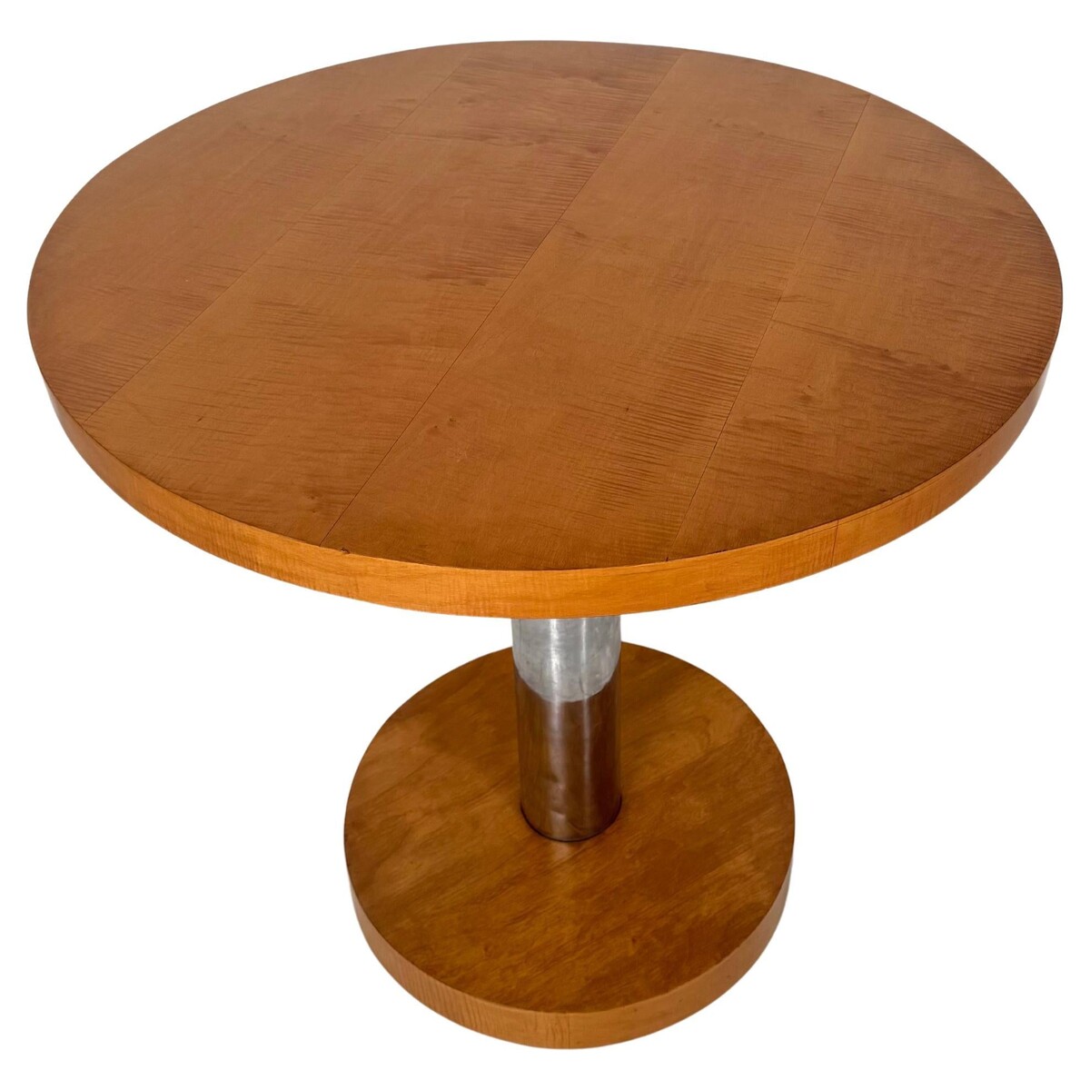 Modernist Guéridon by Marcel-Louis Baugniet, Maple and Nickel-Plated Steel, Belgium, 1930s